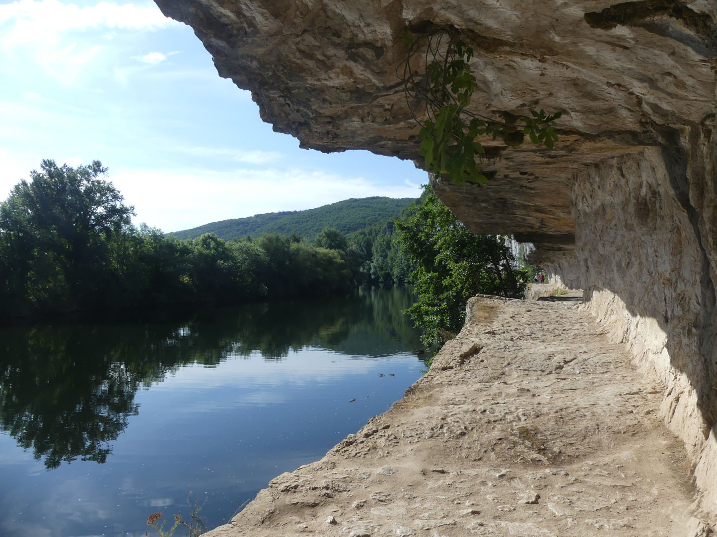 Pour découvrir le coin, nous choisissons la randonnée du chemin de halage. Mais quèsaco ? Un chemin de halage est un chemin taillé dans la roche qui permettait la traction des bateaux (gabarres) par les hommes ou chevaux sur la rivière.