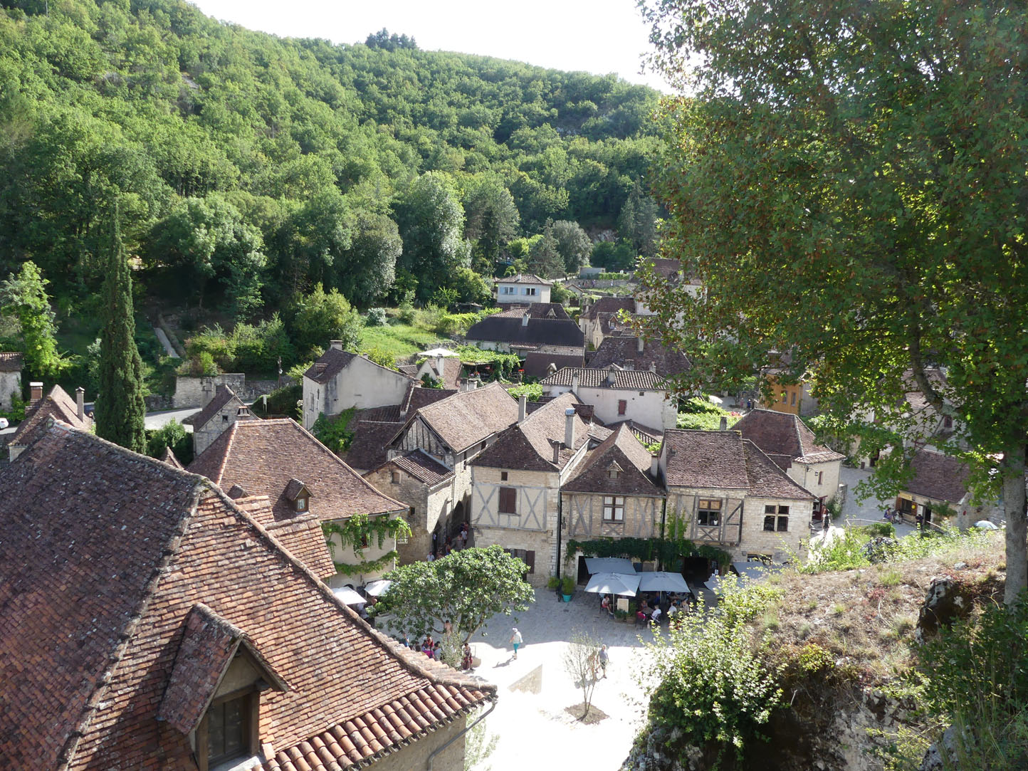 Notre petit coup de cœur du séjour. Pour accéder à ce village, nous arpentons une route à flanc de falaise en longeant le Lot et nous devons traverser un pont suspendu. Petit nœud au ventre…