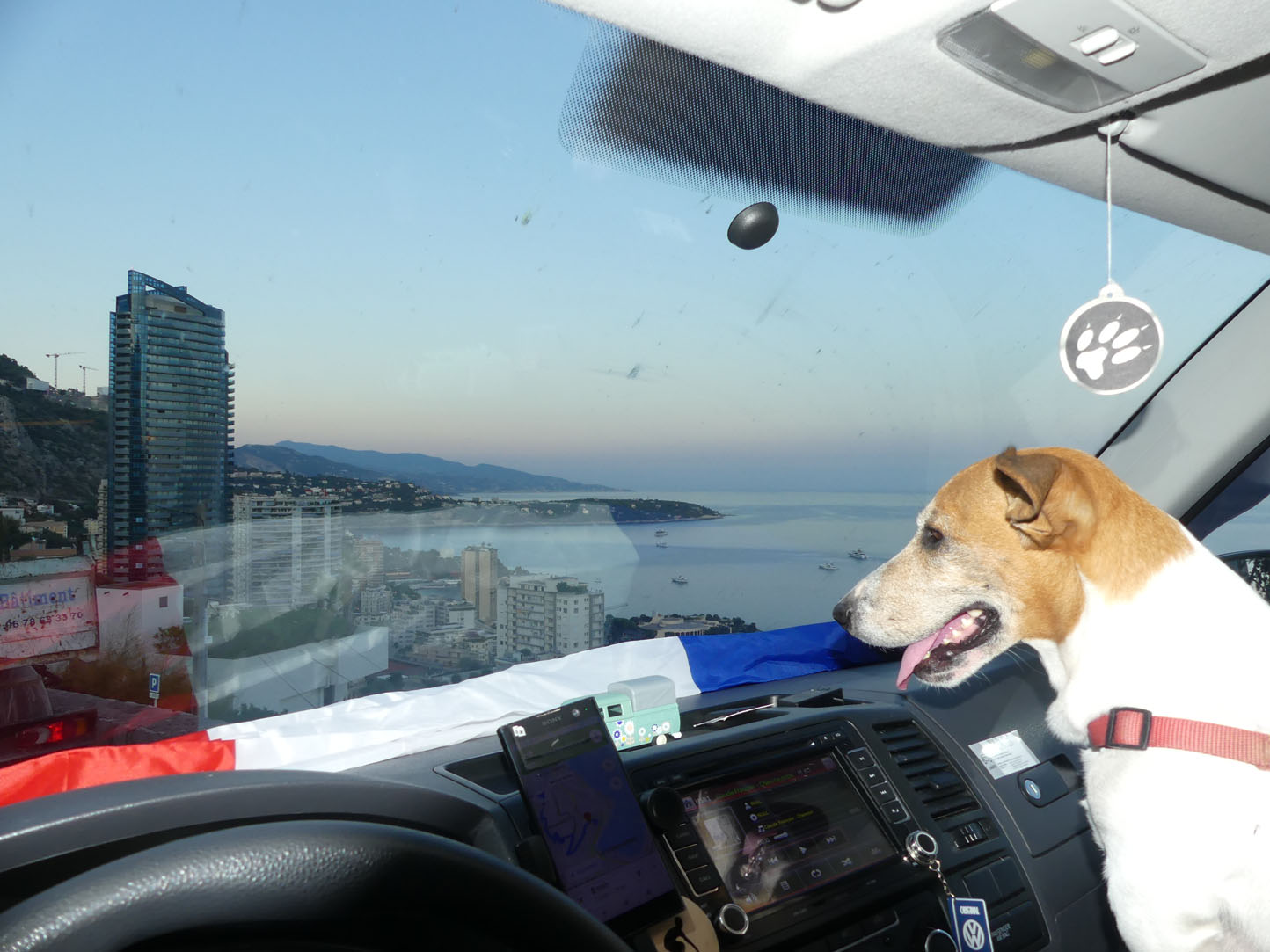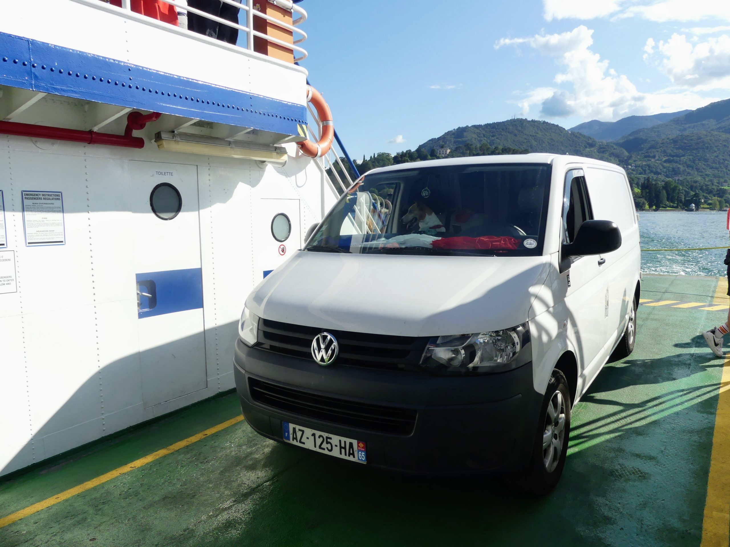 Petite anecdote : Jack debout sur son perchoir était la star du ferry au moment d’accoster. Il est tellement mignon quand il se prend pour le capitaine du van ! Du coup la pression monte pour la descente car les véhicules sortent en premier devant tous les autres passagers… Il ne faut pas se louper avec tous les regards posés sur nous.