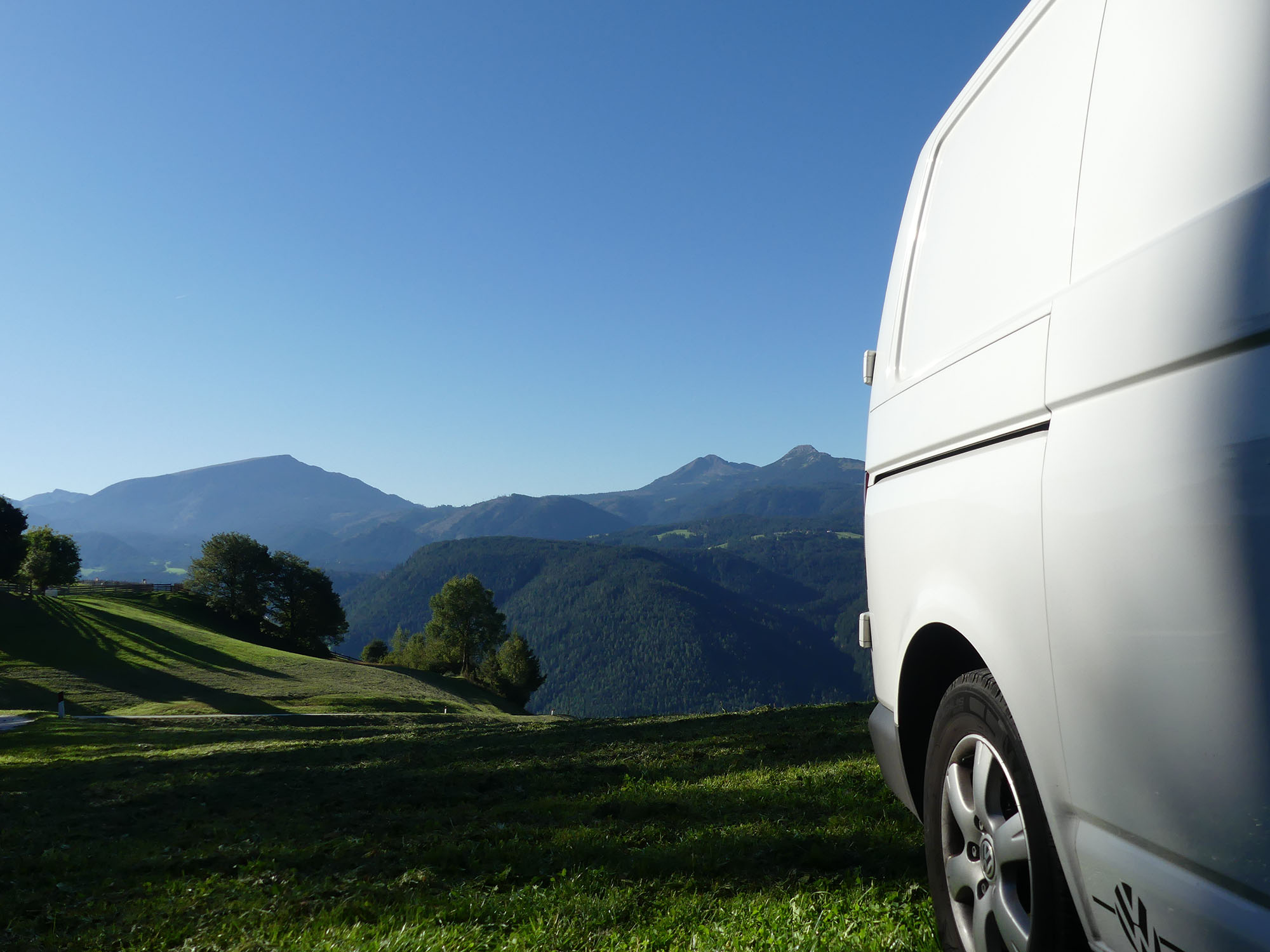 Le soleil est de retour et nous traversons des villages bucoliques en route vers une ferme des Alpes juliennes près de Kamnik. Très bon accueil du propriétaire qui accueille les vans sur son terrain, met à disposition des WC et de l’eau contre 5€.