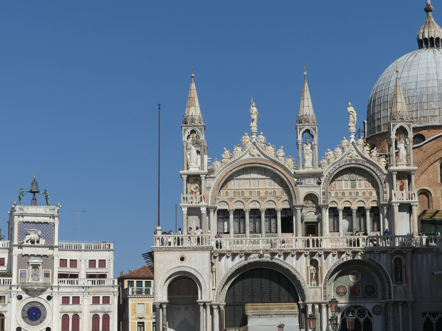 Nous arrivons au cœur de Venise, à la place Saint Marc avec sa basilique, le Palais des Doges et son campanile… Même si on est pas expert en art ou en architecture, on ne peut qu’être touché par les sculptures, le marbre et l’élégance des lieux. Autour de la place, sous les arcades, s’alignent les boutiques de luxe, les restaurants et les brasseries dont le célèbre café Florian avec son orchestre symphonique. Surprise 6,50€ l’expresso (en Italie il est stretto càd serré donc la moitié d’une petite tasse) + 6€/personne de complément pour écouter l’orchestre (que l’on entend depuis la place). Quel attrape touriste, nous avons tout de suite mis les voiles.