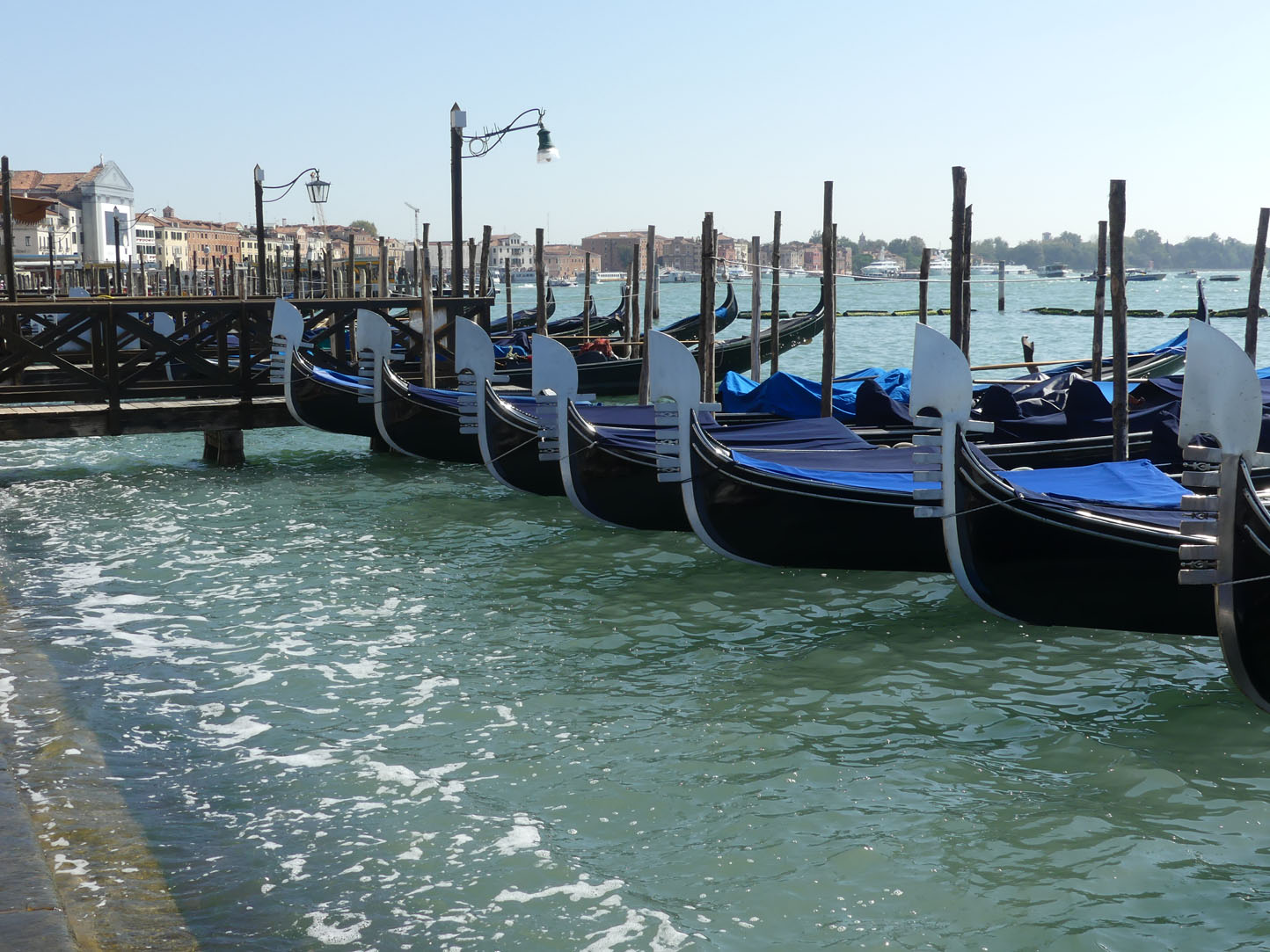 Nous sommes curieux et impatients de voir les fameuses « gondoles à Venise ». De couleurs noires et somptueusement décorées, elles sont le symbole romantique de la ville et un bon moyen de locomotion. Vu le prix rédhibitoire et le manque d’intimité (les touristes scrutent et prennent des photos en permanence. Avoir les yeux braqués sur nous n’est pas vraiment notre trip) nous optons pour la balade à pied.