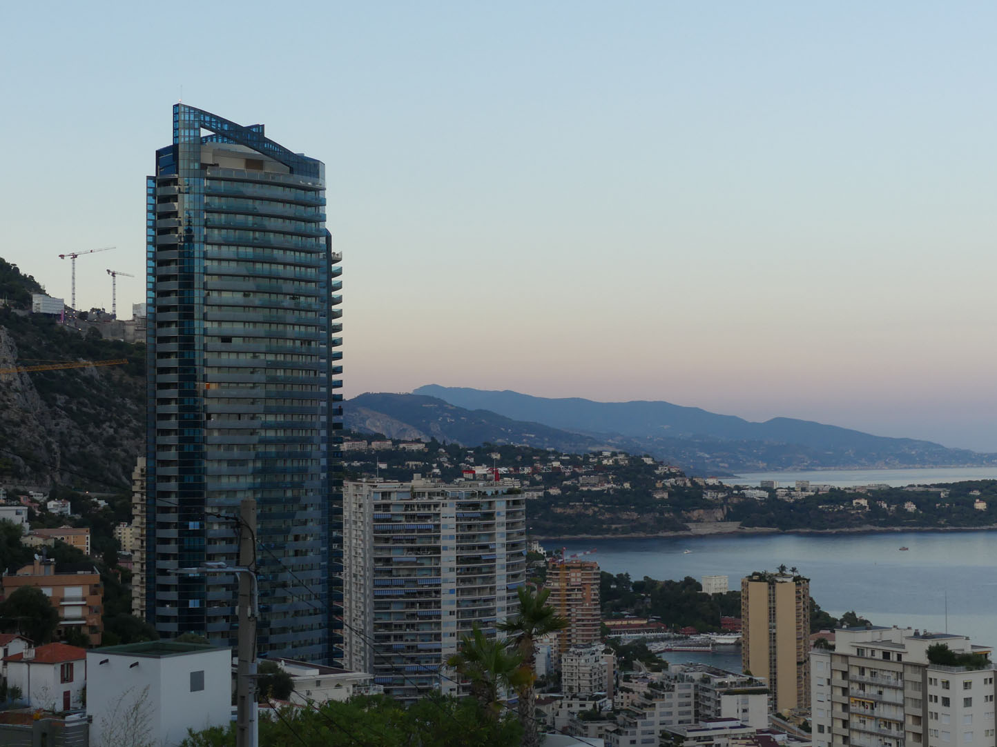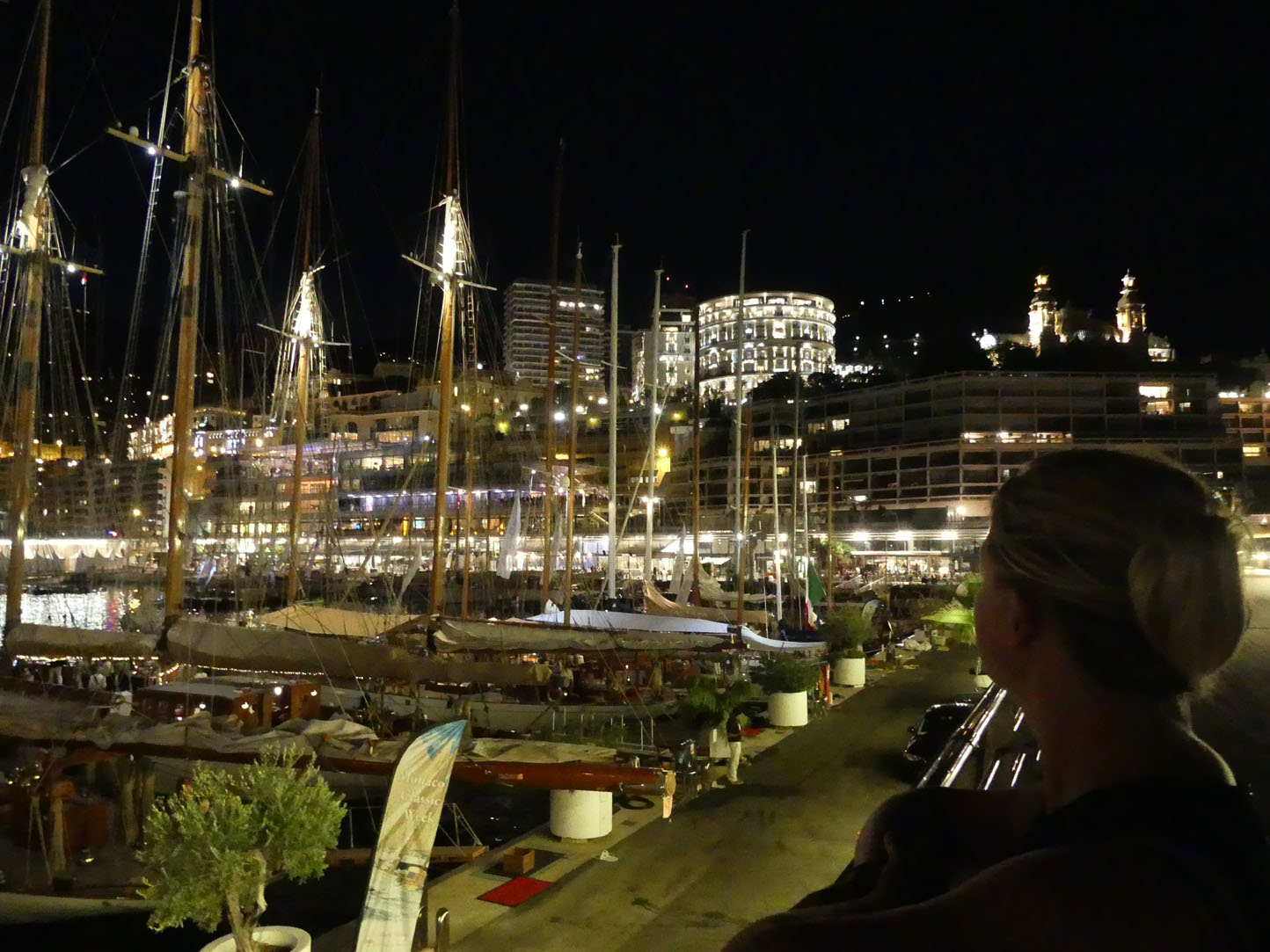 Après un tour de la ville, nous montons sur les hauteurs pour profiter de la soirée avec vue sur Monaco by night. C’est soir c’est pâtes-pinard avec vue sur le rocher illuminé !!!