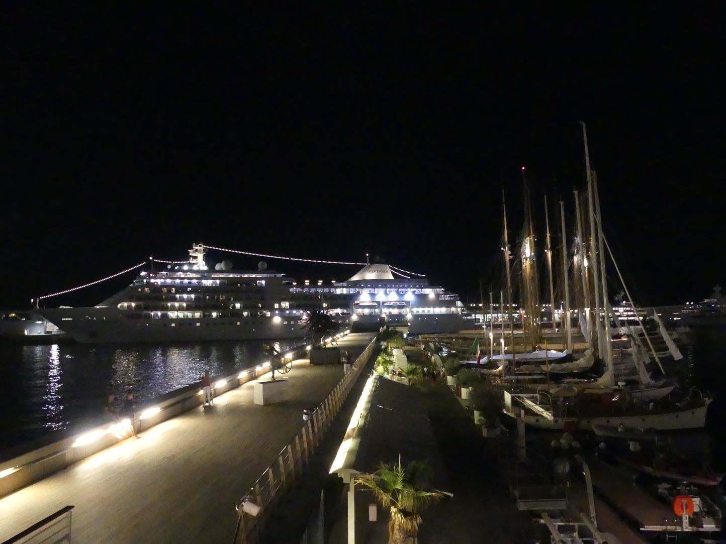 Halte à Monaco…changement de planète. On passe de la nature slovène au bling-bling monégasque. De l’authentisme à l’artificiel. Première impression en arrivant sur les hauteurs, que c’est moche !! Ce rocher bétonné, un alignement d’immeuble et cette grande tour bleue qui s’érige au milieu sans intérêt. Sur la basse corniche nous pouvons dire YOUAH!! : des bâtiments luxueux, un port avec des yachts et des voiliers somptueux. Le yacht club est un bâtiment en forme de paquebot, un truc de dingue.