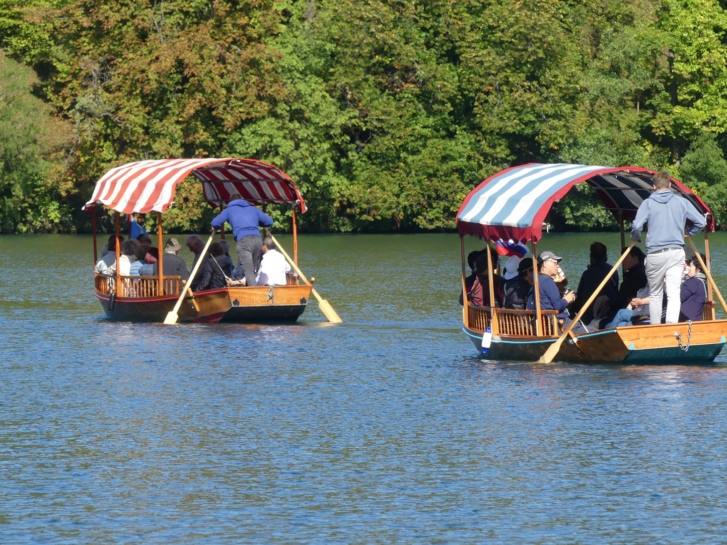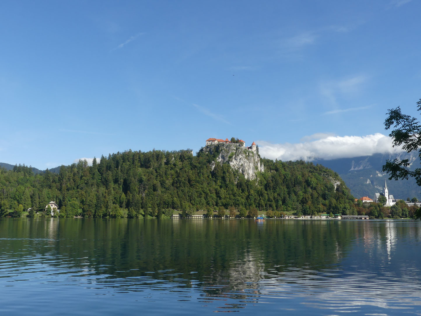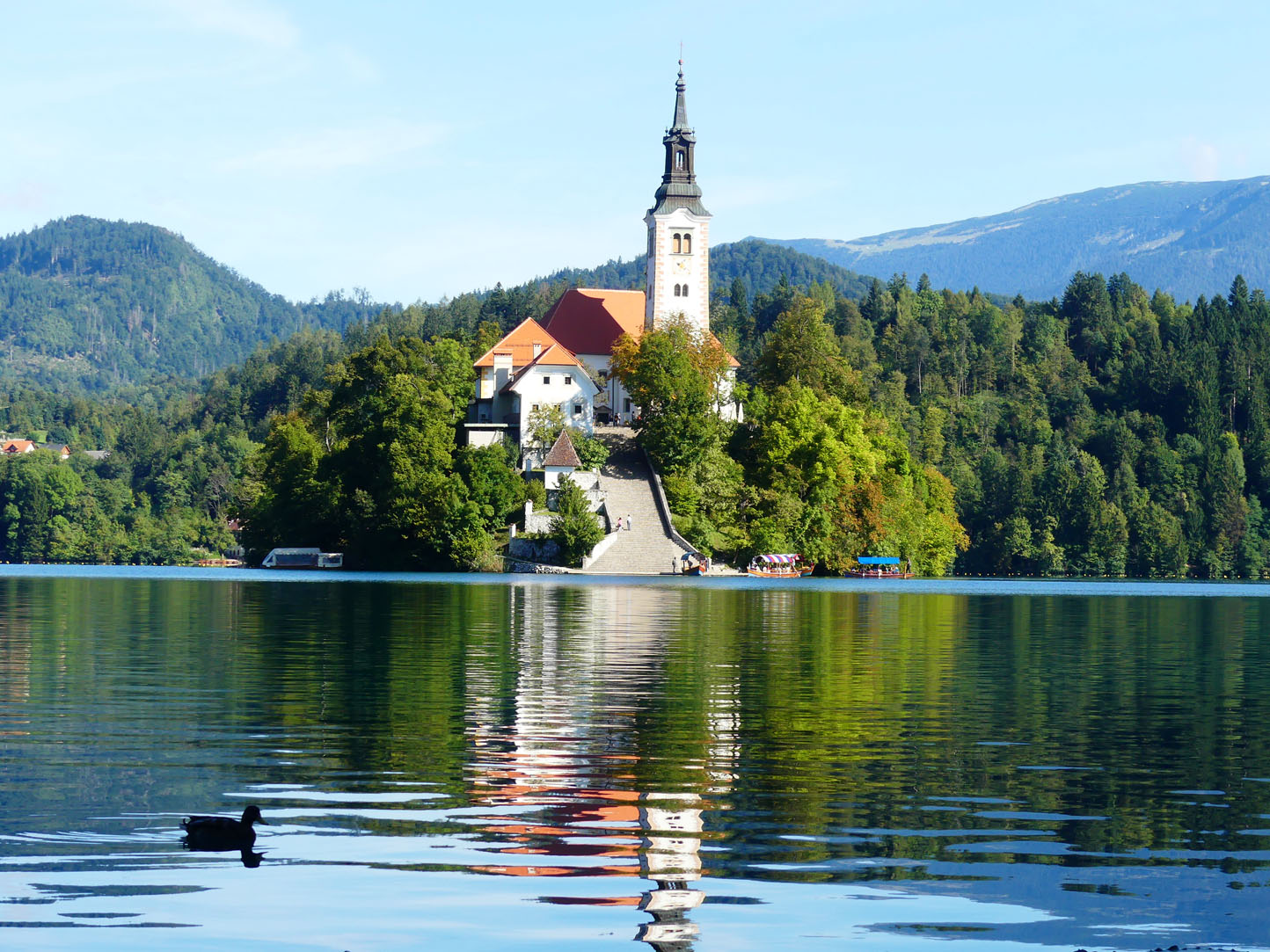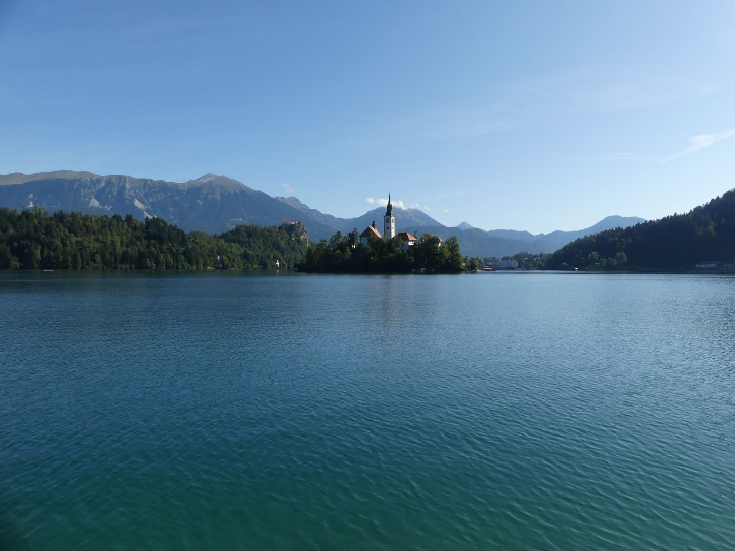 Imaginez un château accroché à une falaise rocheuse surplombant un lac aux eaux d’émeraude dont le miroir reflète les montagnes… vous êtes à Bled. Tout respire le calme et la rêverie. Nous profitons de la lumière matinale pour faire le tour du lac. Ambiance romantique et paisible, il dégage des ondes positives et apaisantes. L’originalité est la chapelle se trouvant sur la petite île au centre du lac. On peut la rejoindre en barque ou en Pletna, la gondole locale. Encore un attrape touriste.