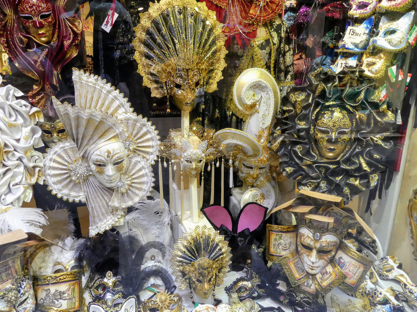 Nous déambulons dans le quartier Cannavero jusqu’au célèbre Pont Rialto. Il est très agréable de flâner dans ces rues commerçantes. Malgré la chaleur ambiante, il y fait frais. Nous sommes admiratifs devant les boutiques de masques de carnaval. Un beau travail d’orfèvre, se sont de vrais bijoux. Petit coup de cœur pour les magasins alimentaires (Gelateria, pâtisserie…) que du bonheur pour les gourmands.