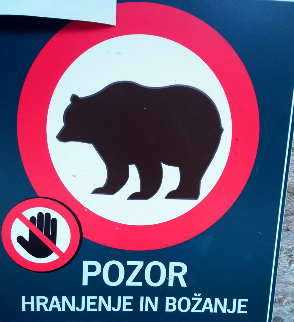 Anecdote : Nous savons que l’ours est présent en Slovénie mais nous sommes intrigués par un panneau de signalisation. Le propriétaire nous confirme leur présence et recommande de garder le chien attaché et de ne pas laisser des restes de nourriture dehors la nuit. Même si Stef aurait aimé le photographier, j’avoue que c’est une rencontre que je préfère éviter.